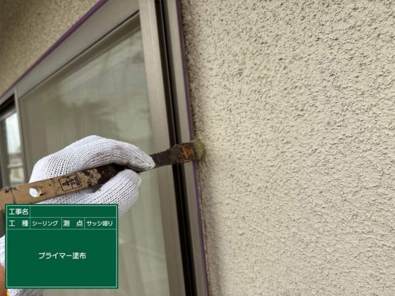 【下塗り】プライマーを塗布しシーリング材の密着をよくします。
