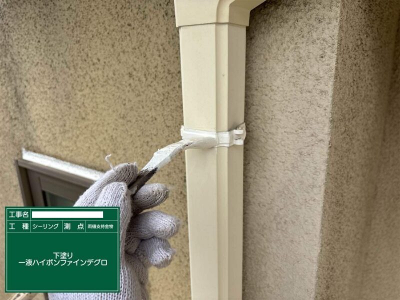 【水切り】下塗りです。鉄部分の下塗りは錆止め塗装をします。