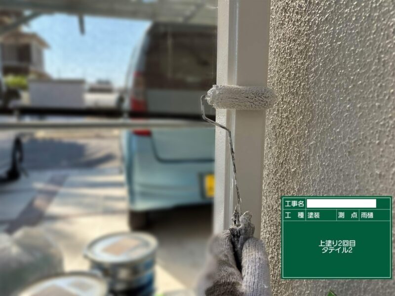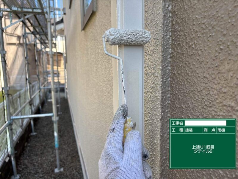 【雨樋】上塗りです。雨樋はこれで完了です。