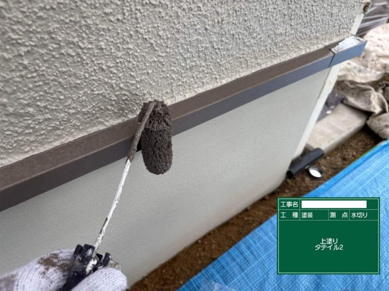 【水切り】上塗りです。水切りはこれで完了です。