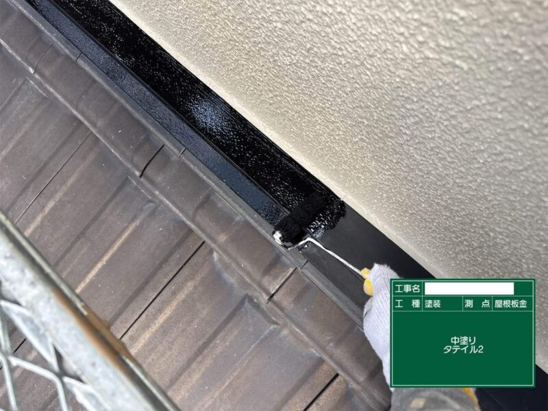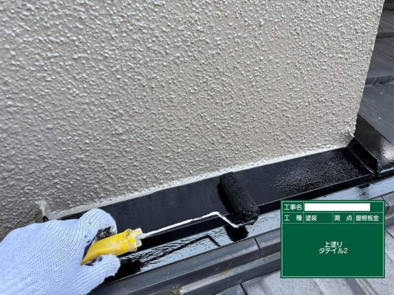 【屋根板金】上塗りです。屋根板金はこれで完了です。