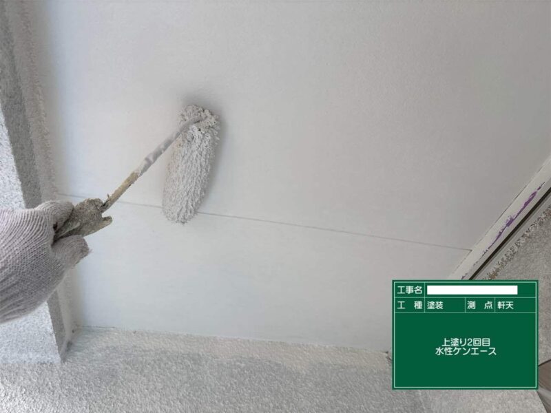 【軒天井】上塗りです。軒天井はこれで完了です。