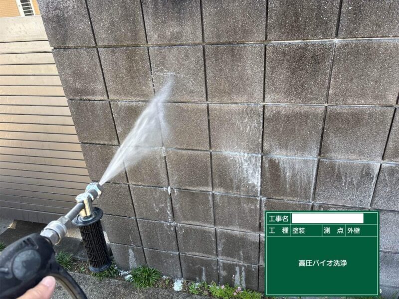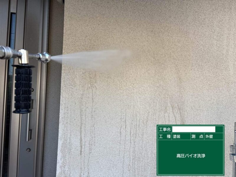 【高圧洗浄】しっかりと古い塗膜や汚れを落としていきます。