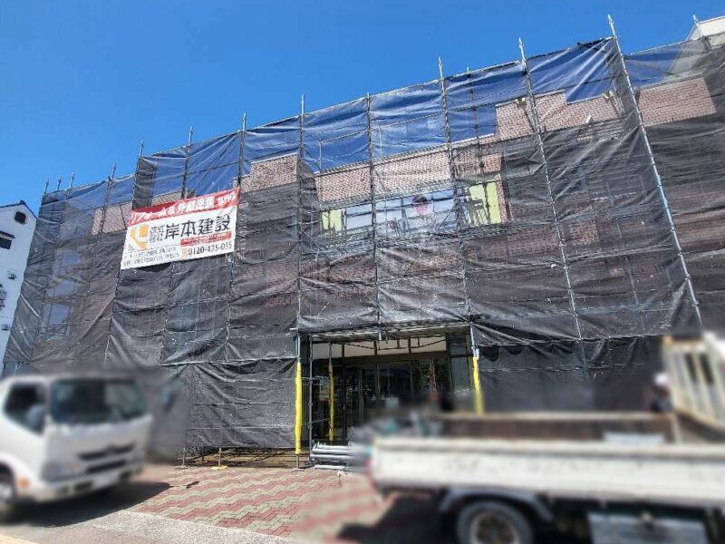 【足場】職人の安全、施工の効率、飛散防止の為足場を設置します。シーリング工事