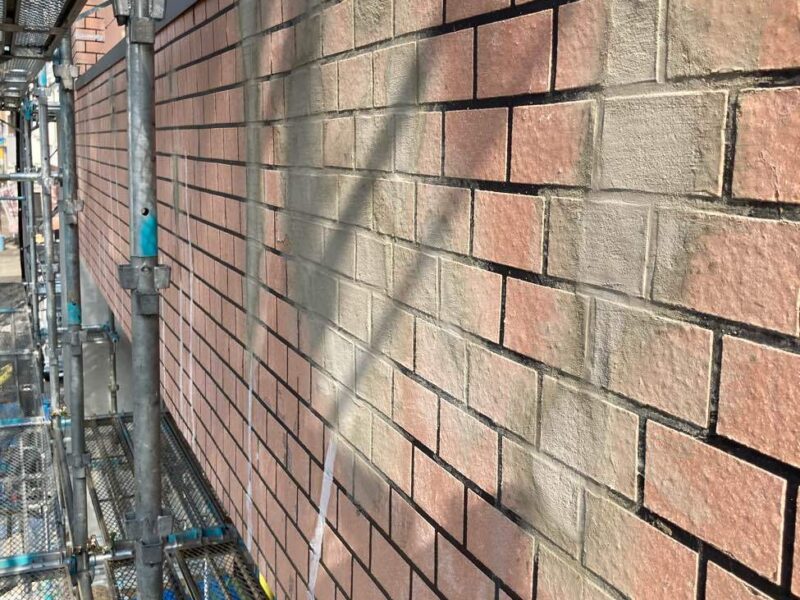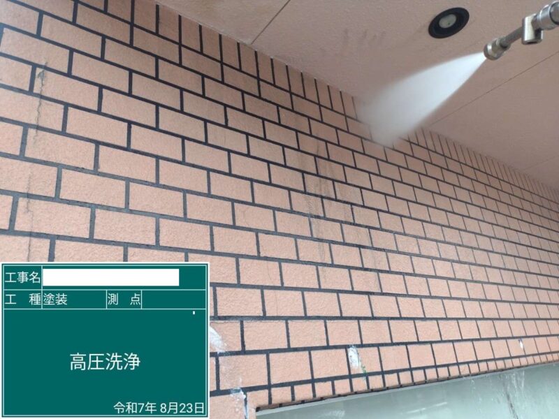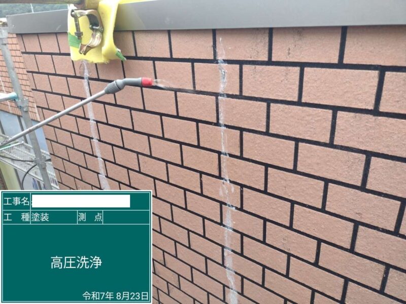 【高圧洗浄】しっかりと古い塗膜や汚れを落としていきます。外壁塗装