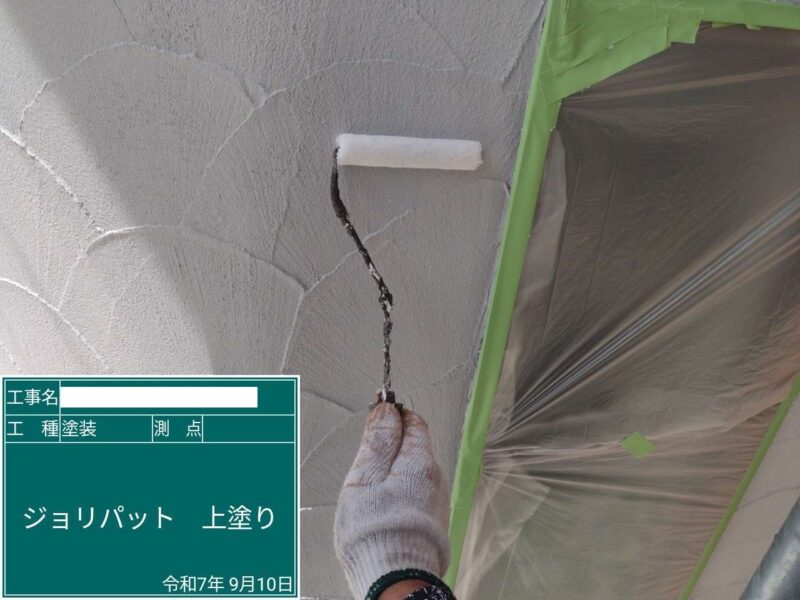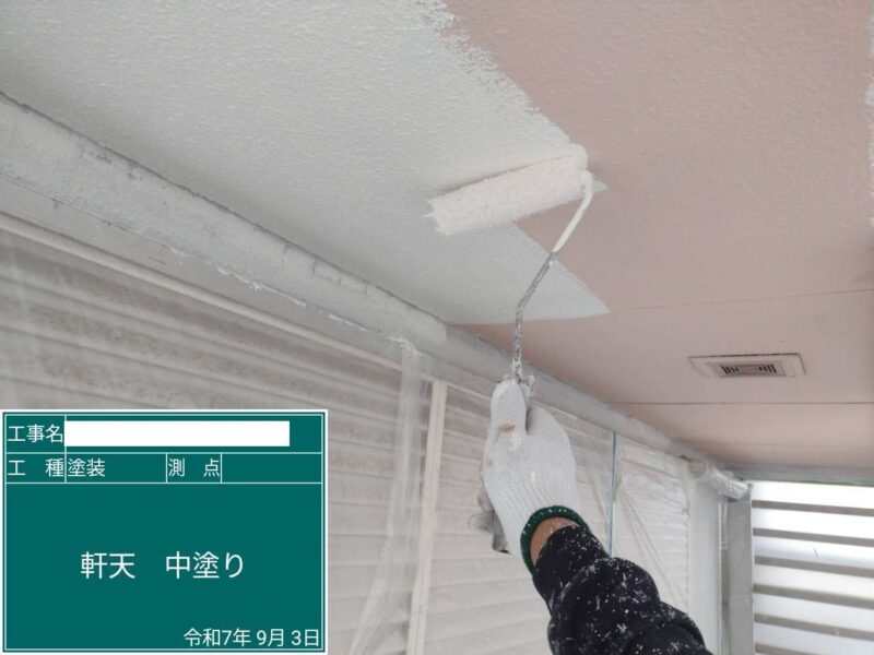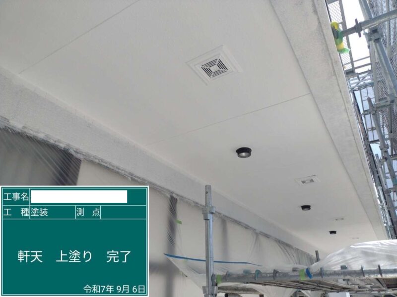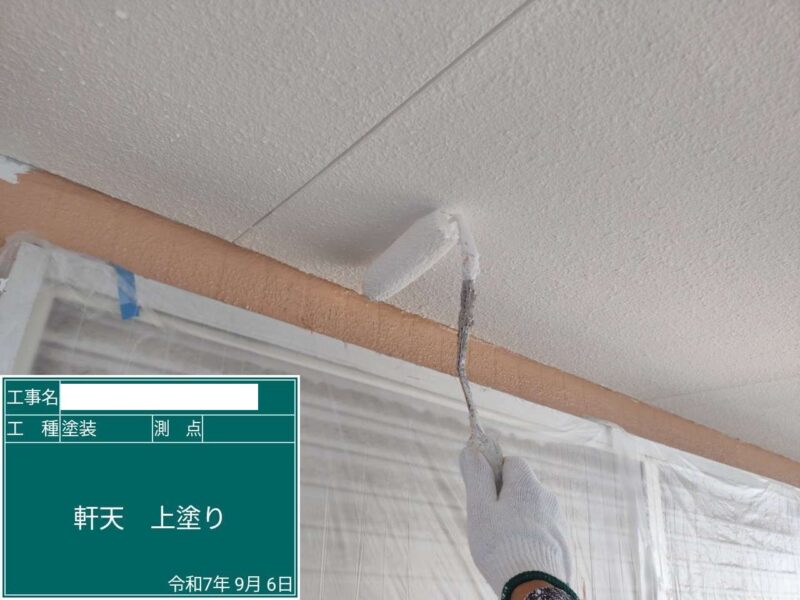 【軒天】上塗り2回目です。付帯部