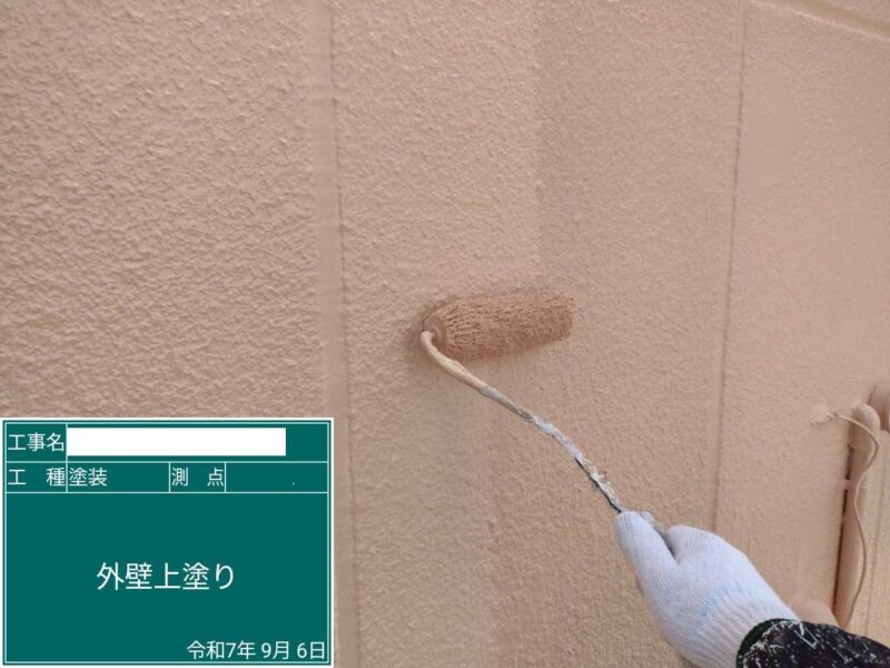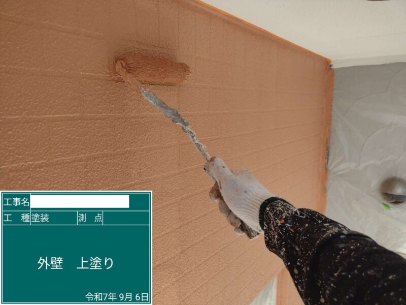 【上塗り】上塗りをして仕上げます。外壁塗装