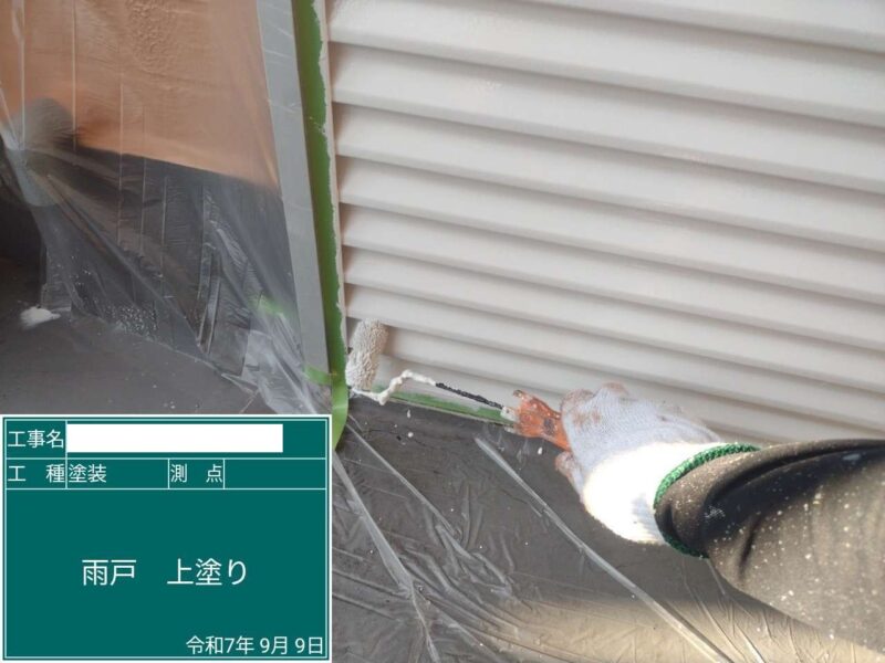 【雨戸】上塗りです。付帯部