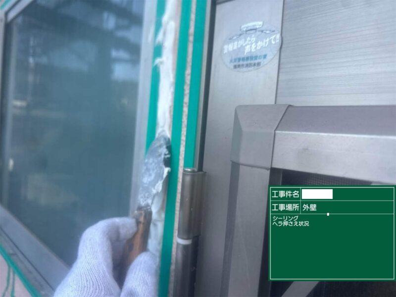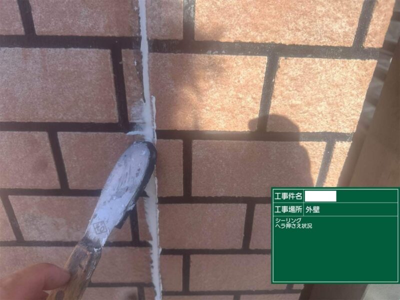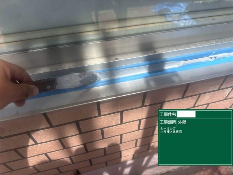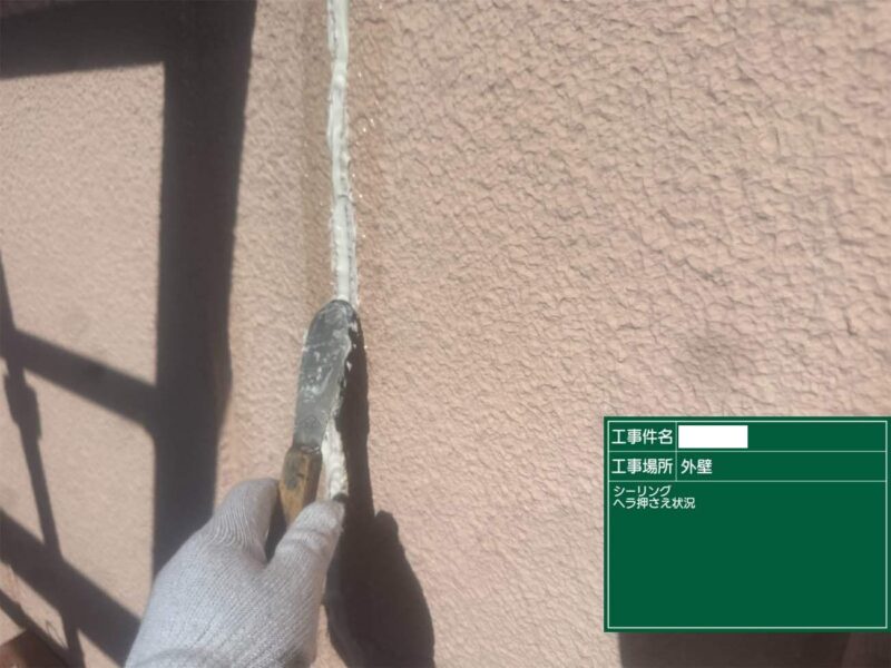 【押さえ】ヘラで表面を整えます。シーリング工事はこれで完了です。外壁補修