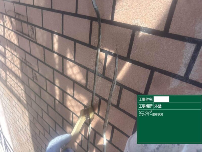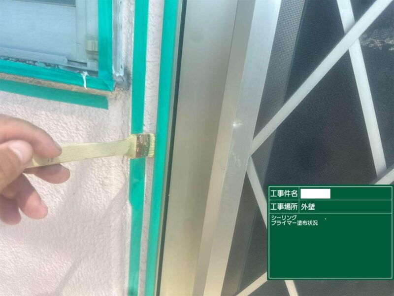 【下塗り】プライマーを塗布しシーリング材の密着をよくします。外壁補修