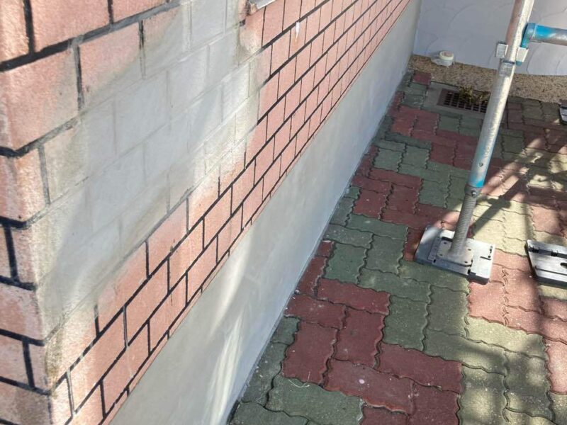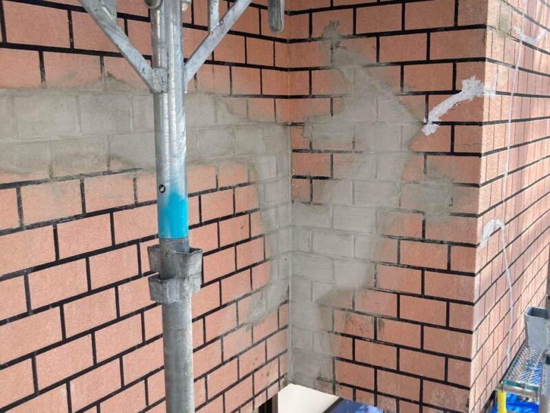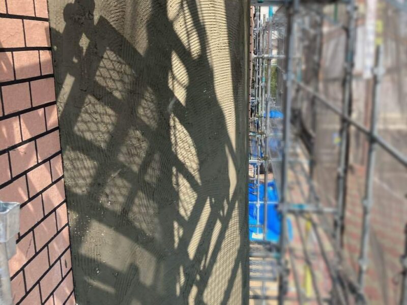 【左官補修】塗装前に外壁の傷んだ部分を左官補修していきます。左官工事