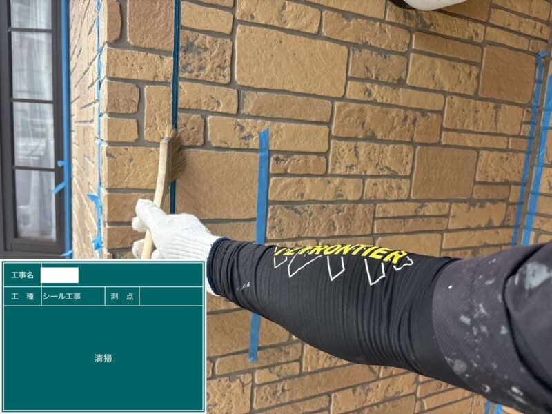 【清掃】まず撤去した部分をきれいにしていきます。シーリング工事