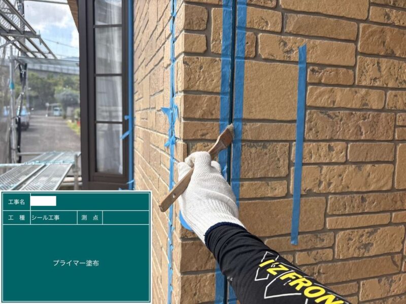 【下塗り】プライマーを塗布しシーリング材の密着をよくします。シーリング工事