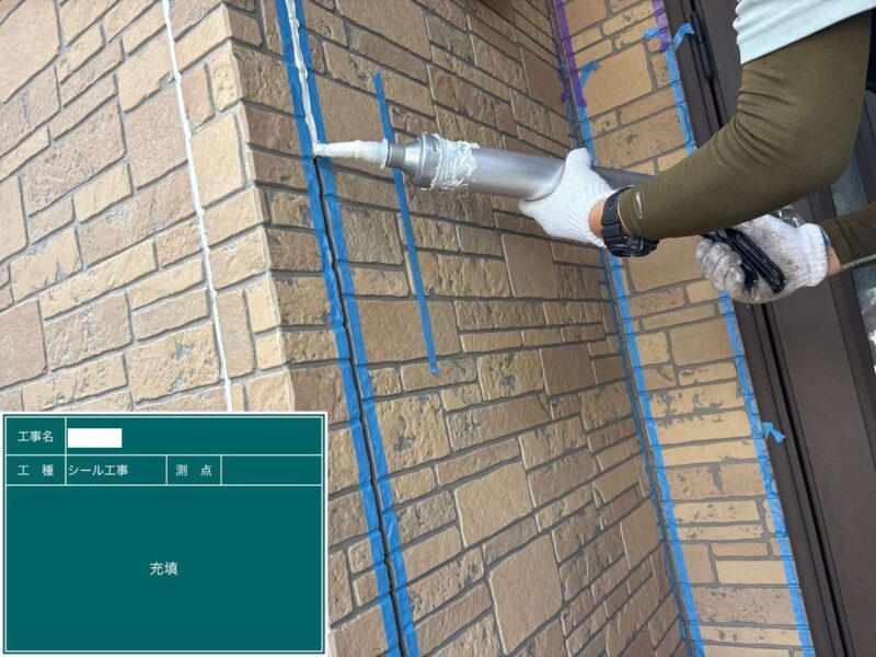 【充填】丁寧に、空気が入らないように充填していきます。シーリング工事