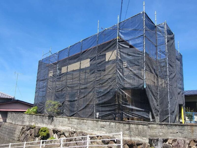 【足場】職人の安全、施工の効率、飛散防止の為足場を設置します。シーリング工事