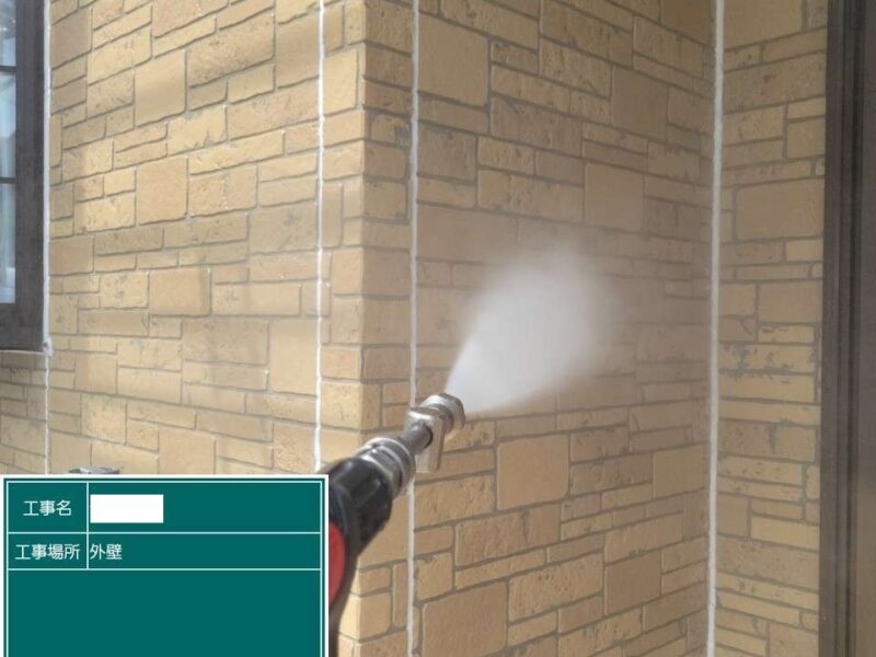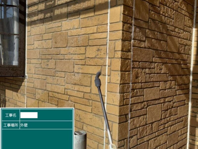【高圧洗浄】しっかりと古い塗膜や汚れを落としていきます。外壁塗装