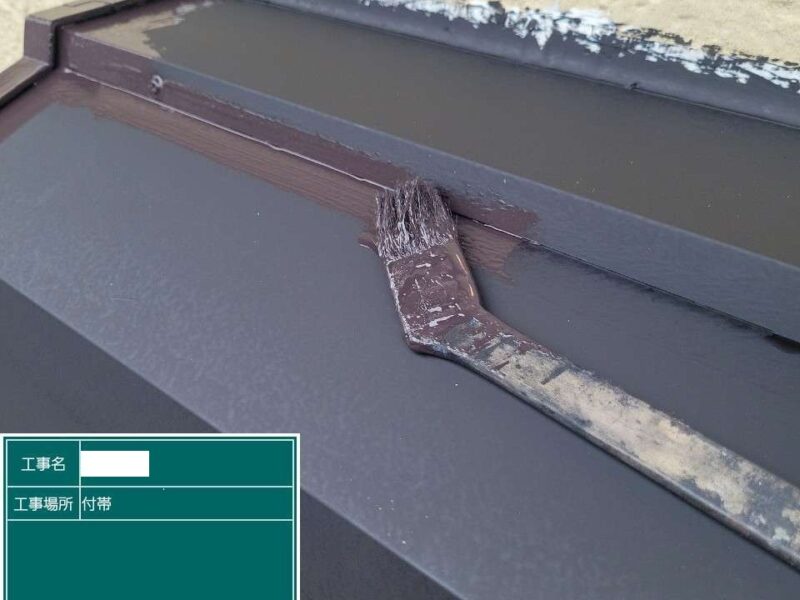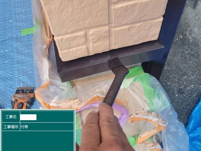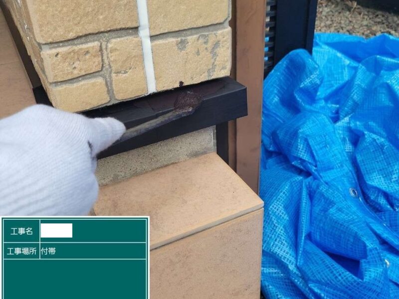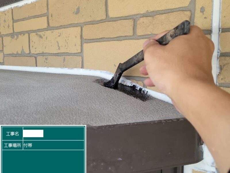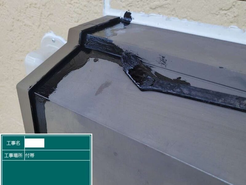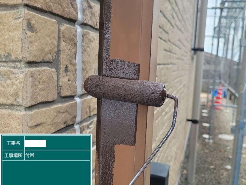 【水切り】下塗りです。鉄部には錆止め塗装をします。付帯部