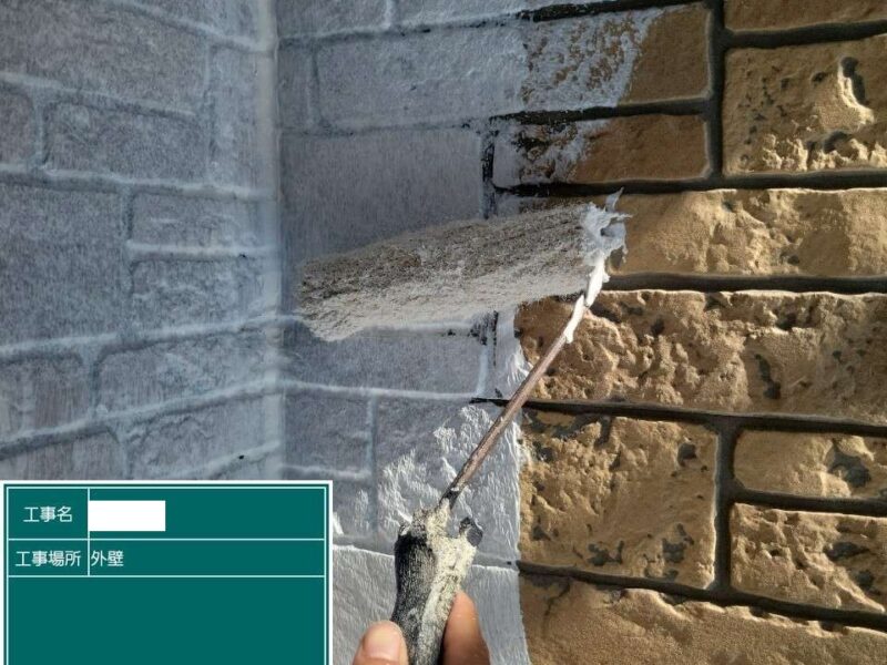 【1F 下塗り】塗料との密着性を良くします。外壁塗装