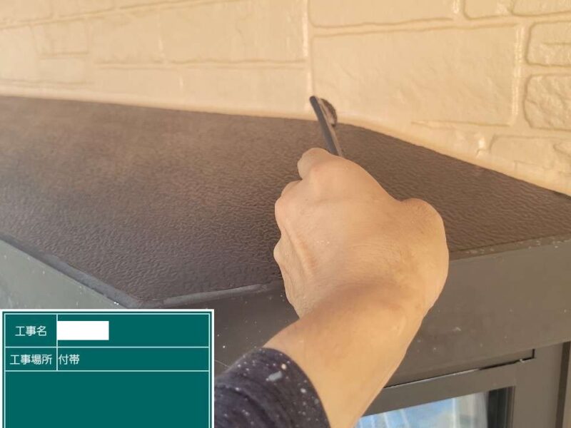 【出窓庇】上塗りです。出窓庇はこれで完了です。付帯部