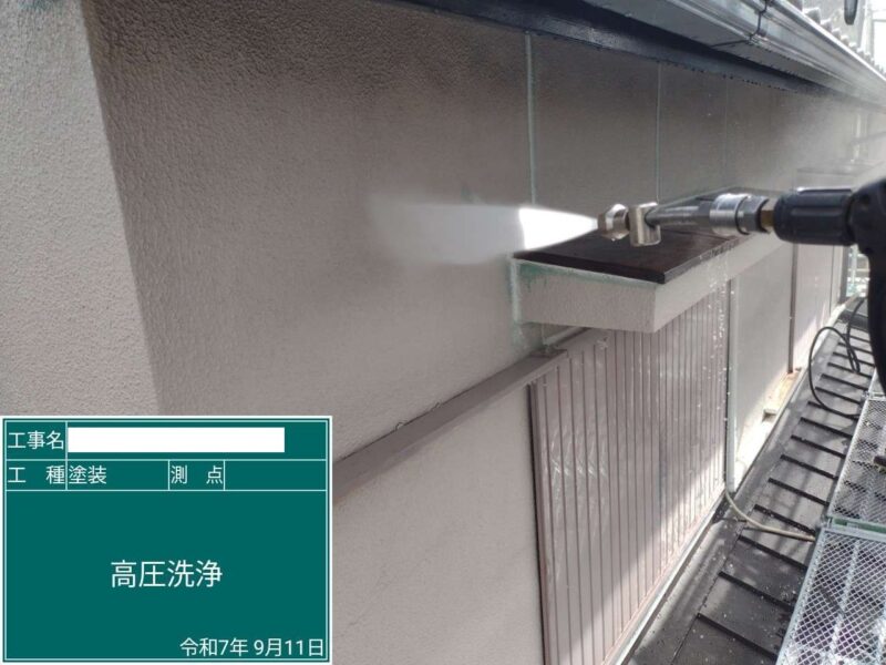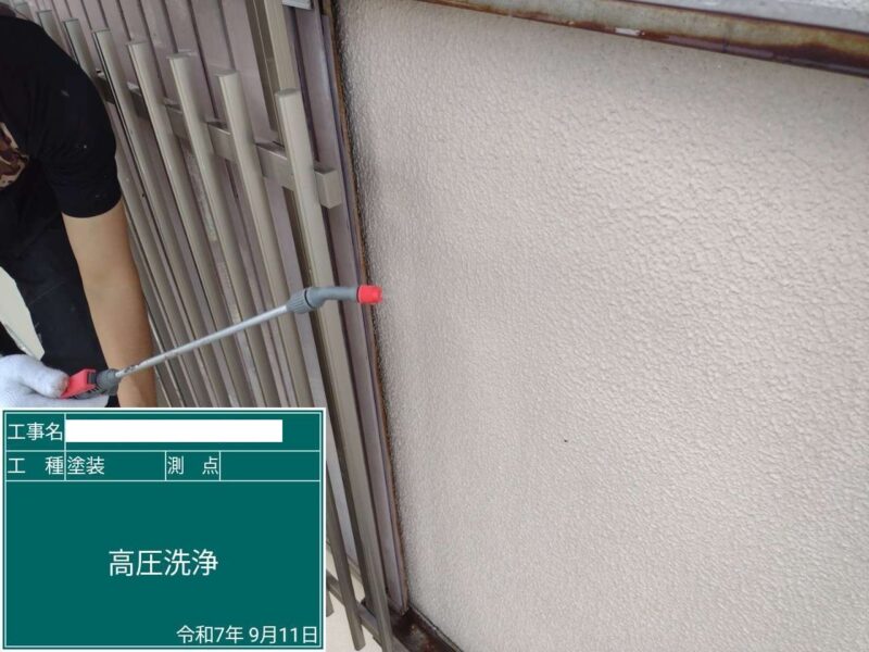 【高圧洗浄】隅々まで汚れを落としていきます。外壁も同様に