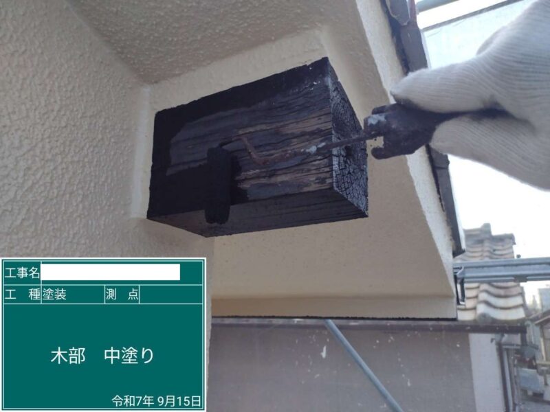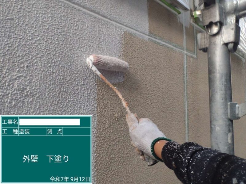 【下塗り】塗料の密着をよくするため下塗りをしていきます。