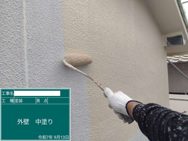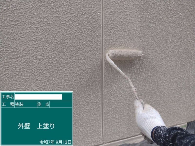 【上塗り】上塗りです。外壁塗装はこれで完了です。