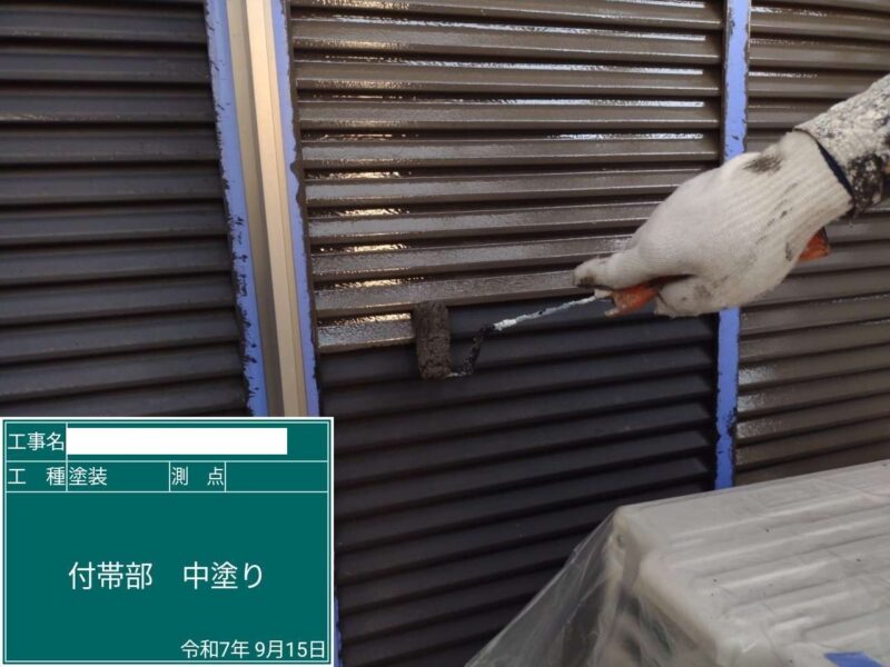 【雨戸】下塗りです。鉄部の下塗りには錆止めを使用します。