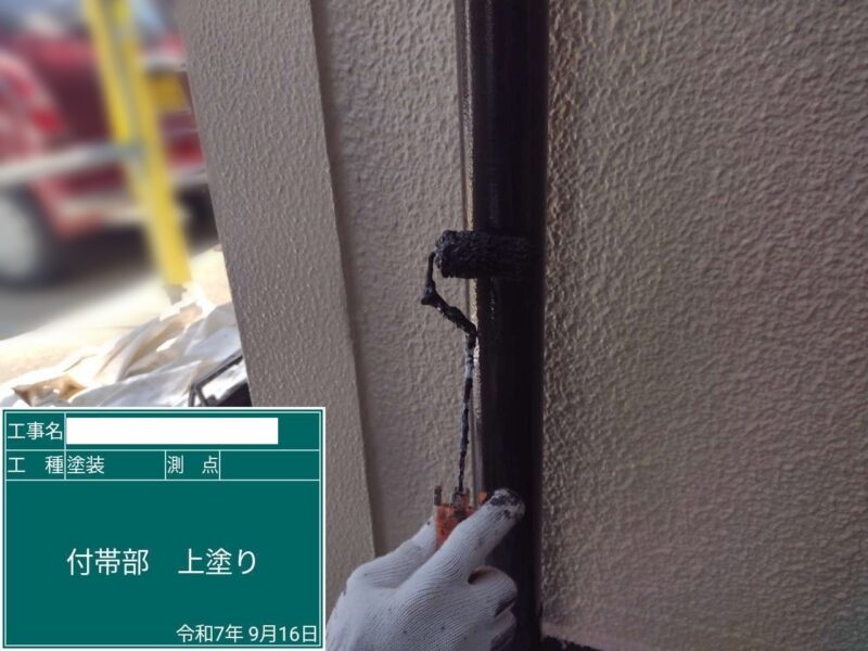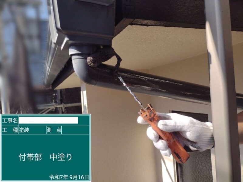 【雨樋】上塗り2回目です。雨樋はこれで完了です。