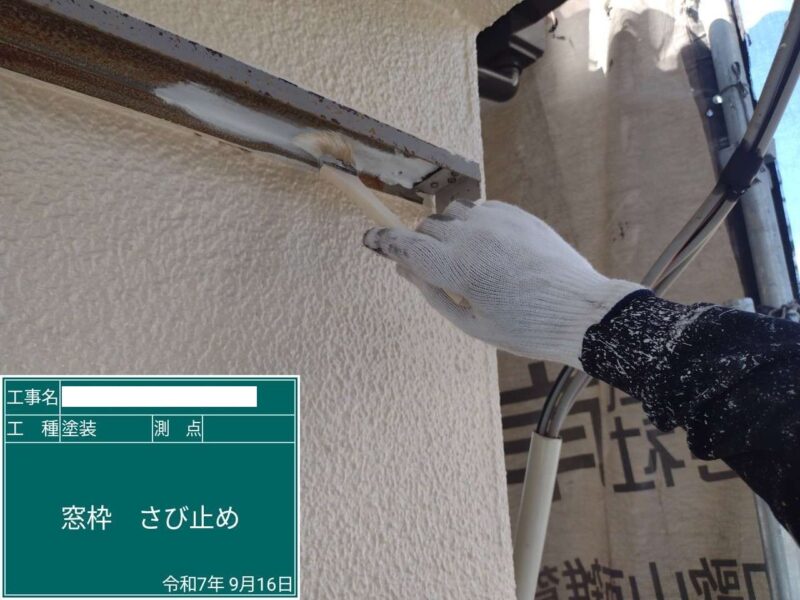 【窓枠】ケレンをした後の下塗りです。鉄部の下塗りには錆止めを使用します。