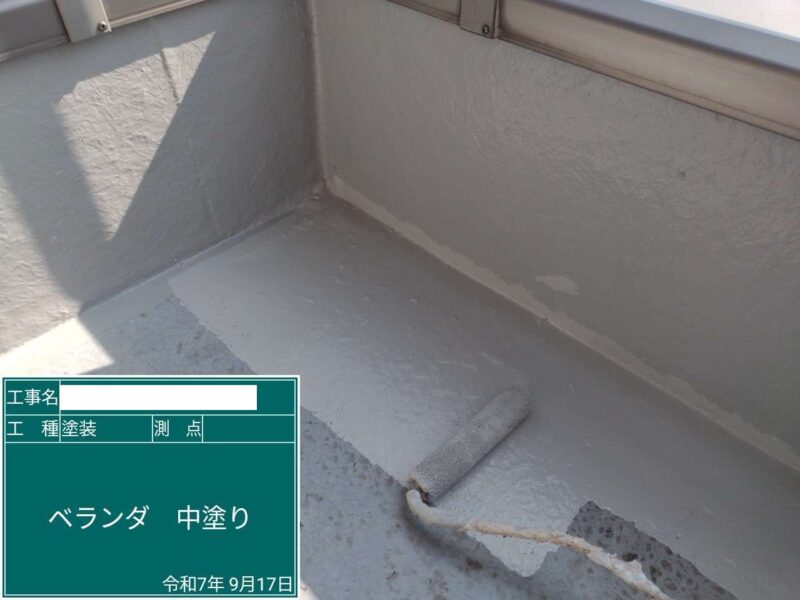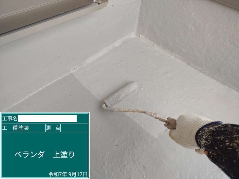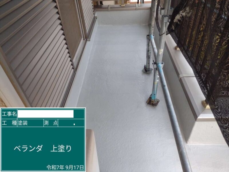 【ベランダ防水】上塗り1回目です。