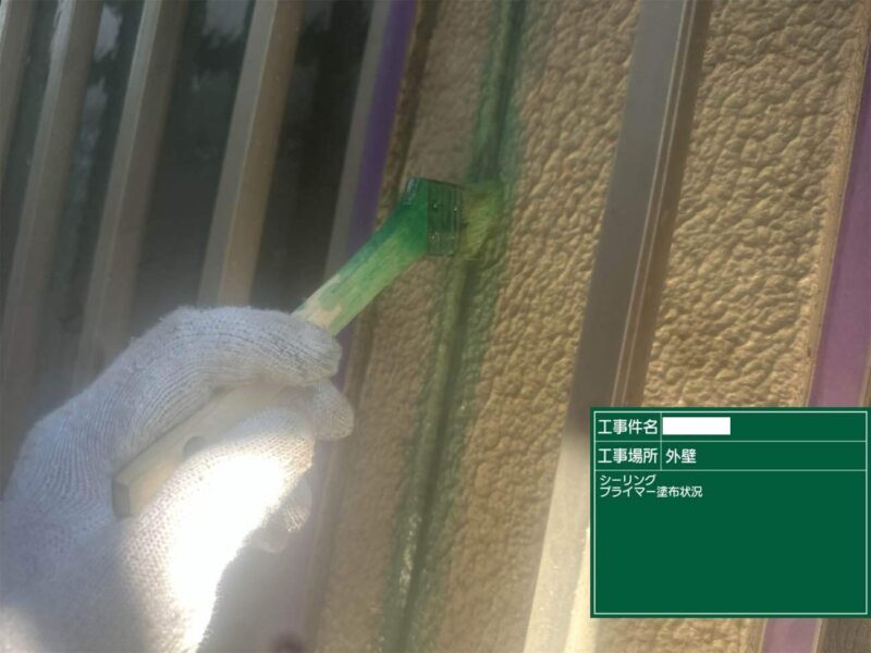 【下塗り】プライマーを塗布しシーリング材の密着をよくします。