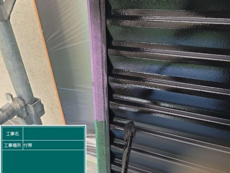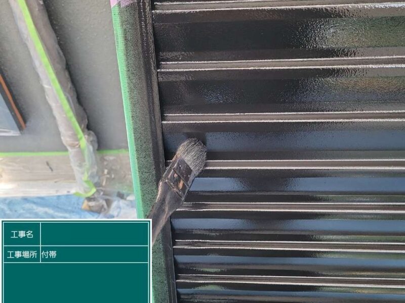 【アクセント部 上塗り】上塗りです。狭い隙間などは、小さいローラーや刷毛が入る部分は塗装していきます。外壁はこれで完了です。