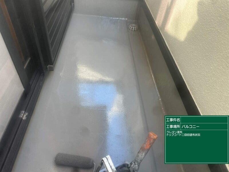 【トップコート二回目塗布】ベランダ防水はこれで完了です。