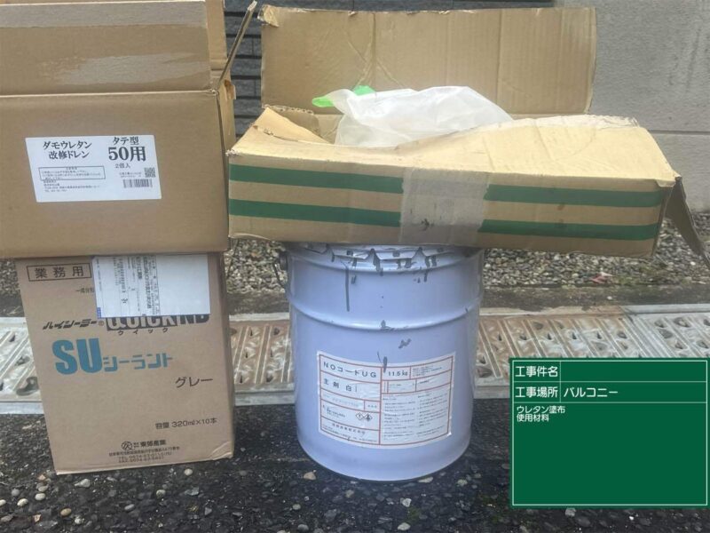 【材料】今回ベランダ防水に使用する防水の材料です。