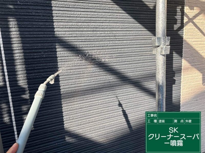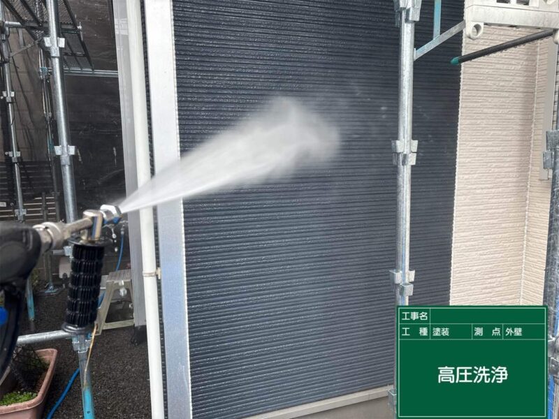 【高圧洗浄】しっかりと古い塗膜や汚れを落としていきます。