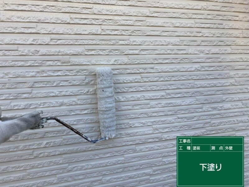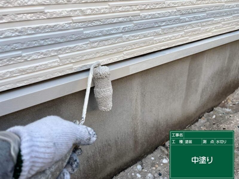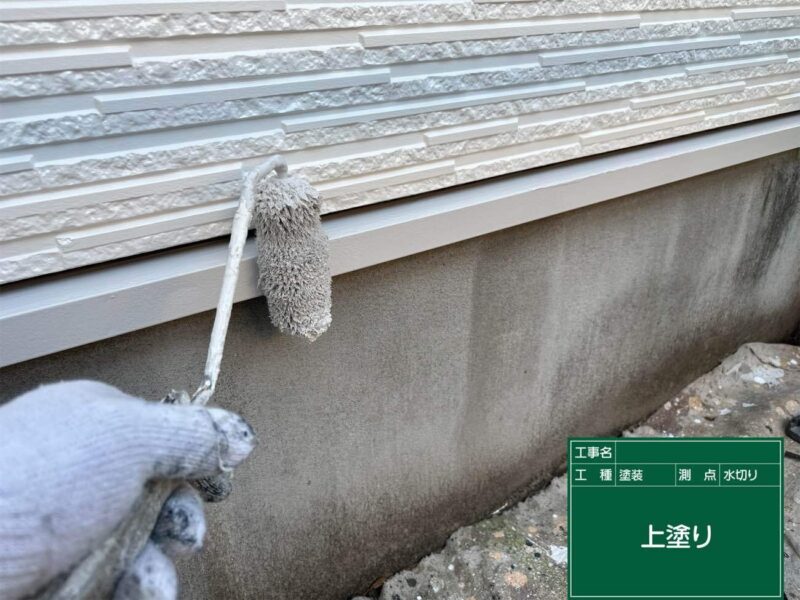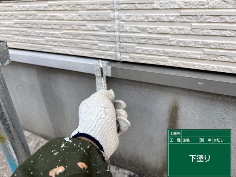 【水切り】下塗りです。鉄部分の下塗りは錆止め塗装をします。