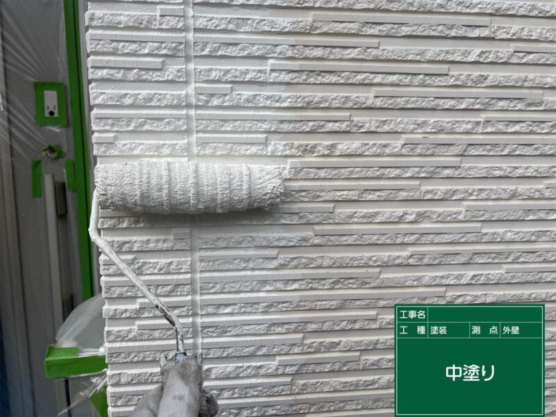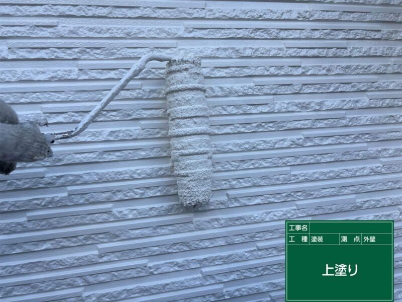 【上塗り】中塗りと同じ塗料で仕上げていきます。狭い隙間などは、小さいローラーや刷毛が入る部分は塗装していきます。