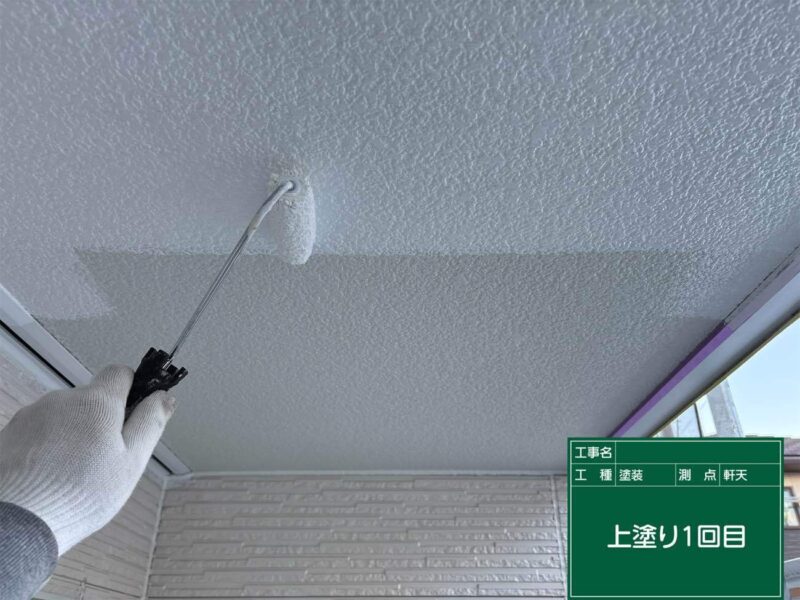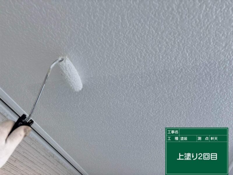 【軒天井】上塗りです。軒天井はこれで完了です。