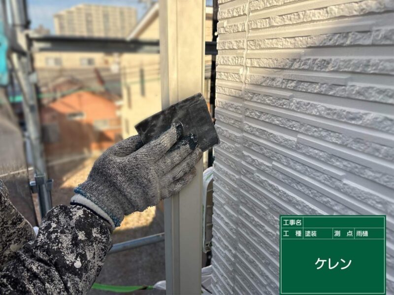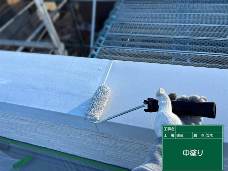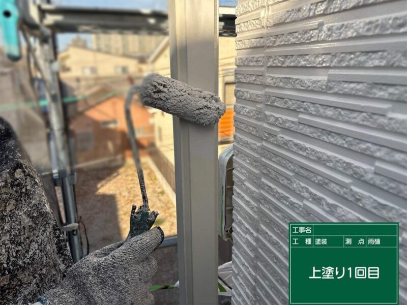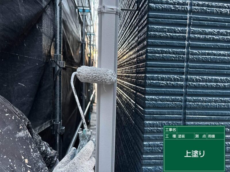 【雨樋】上塗りです。雨樋はこれで完了です。