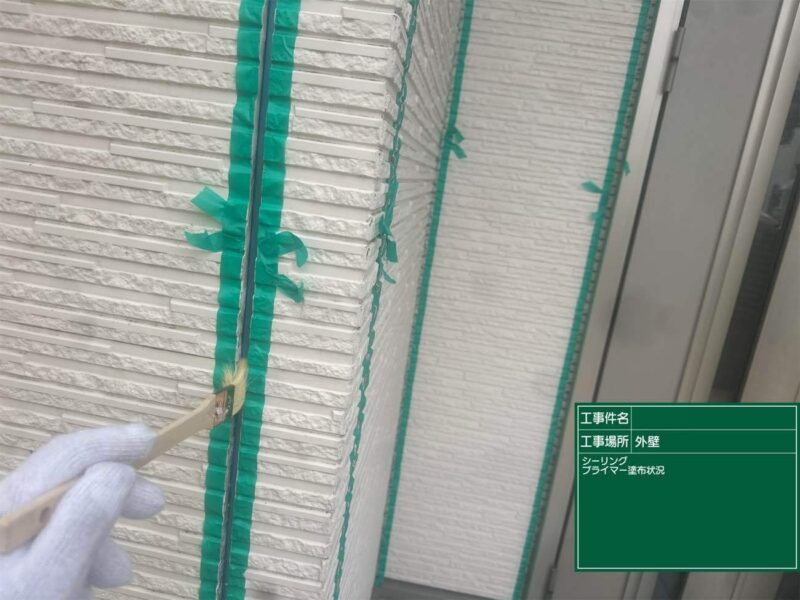 【下塗り】プライマーを塗布しシーリング材の密着をよくします。
