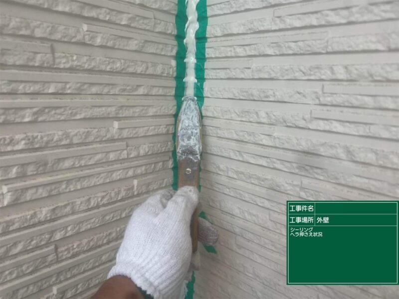 【押さえ】ヘラで表面を整えます。シーリング工事はこれで完了です。