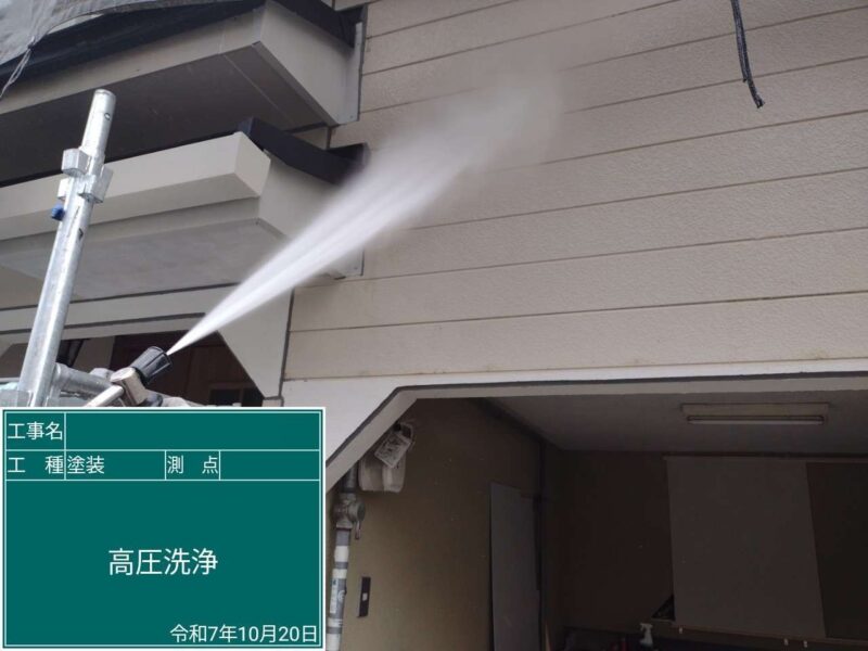 【高圧洗浄】バイオ液を塗布した後、しっかりと古い塗膜や汚れを落としていきます。