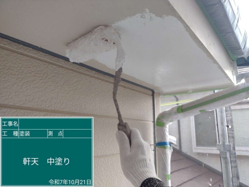 【軒天井】上塗りです。