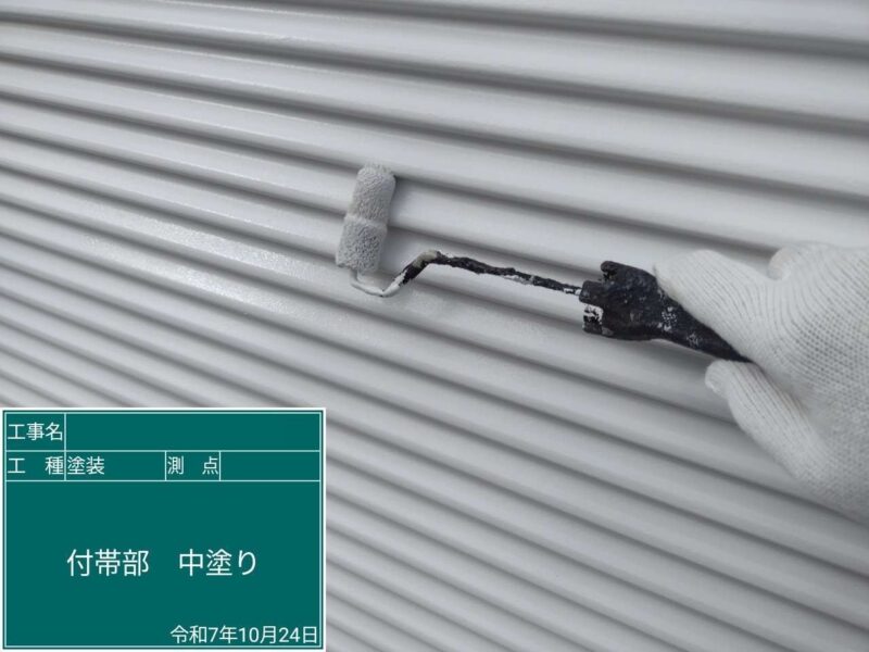 【上塗り】中塗りと同じ塗料で仕上げていきます。狭い隙間などは、小さいローラーや刷毛が入る部分は塗装していきます。