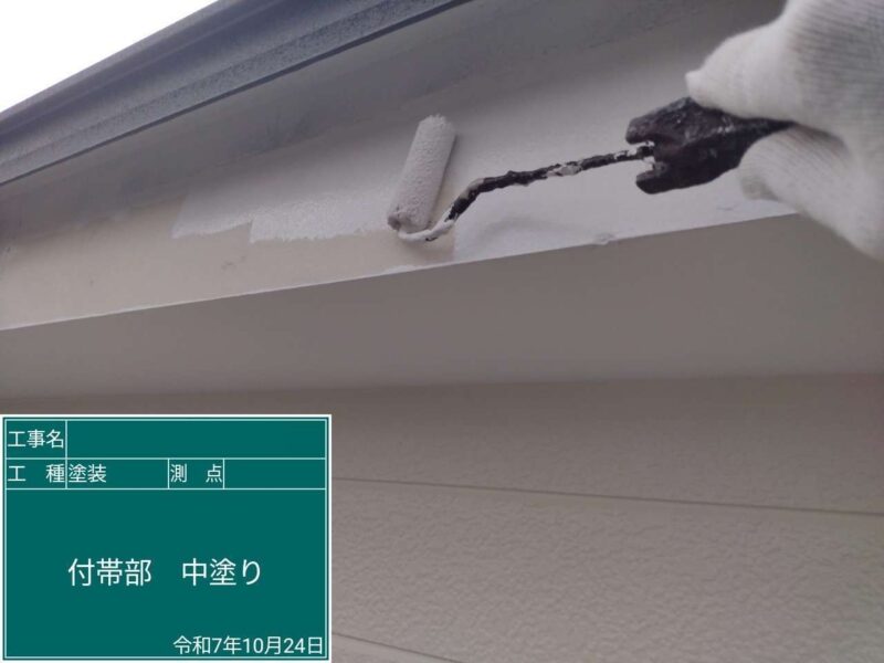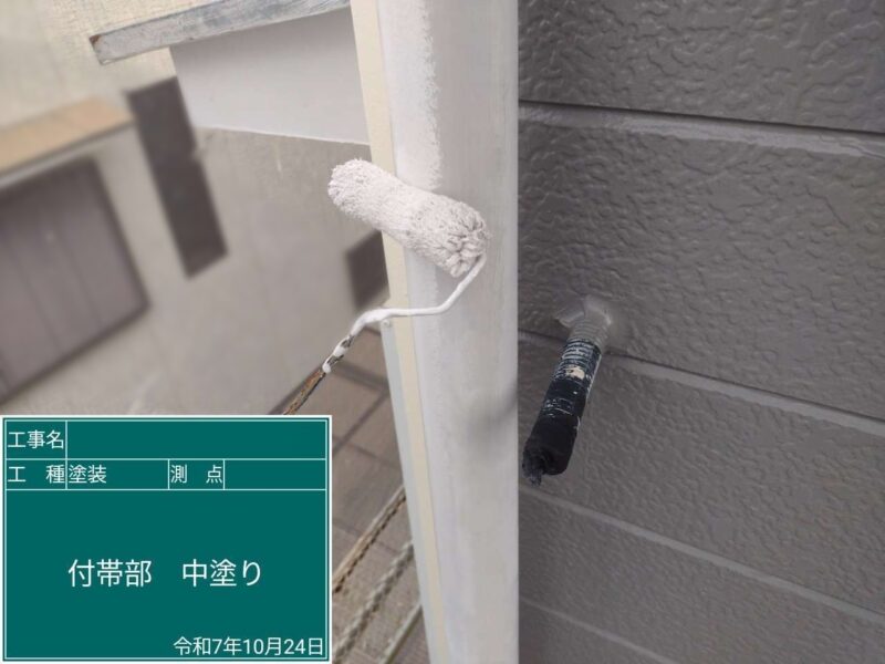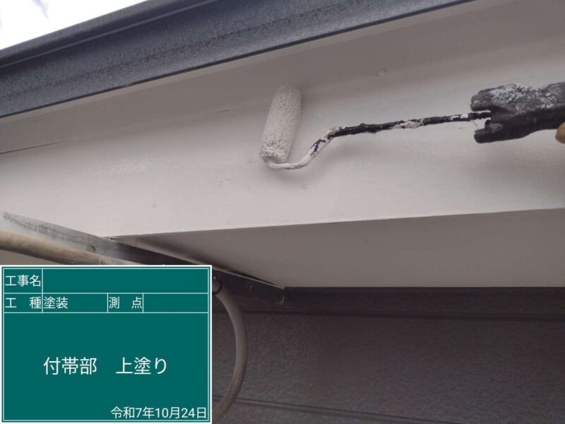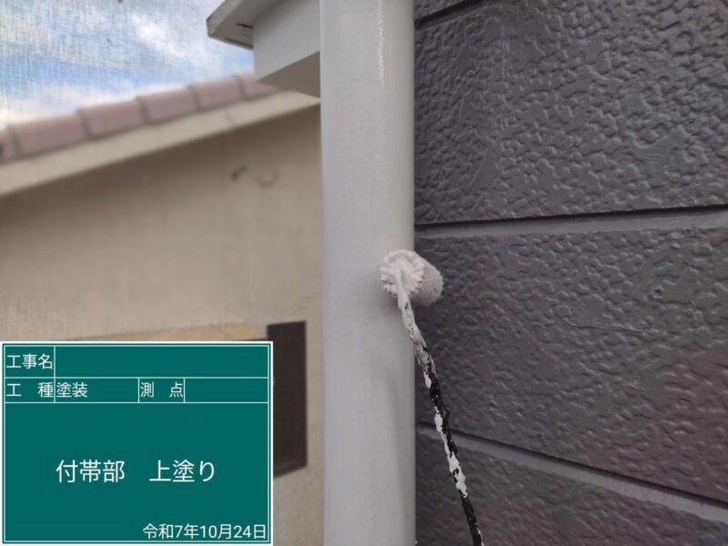【雨樋】上塗りです。雨樋はこれで完了です。