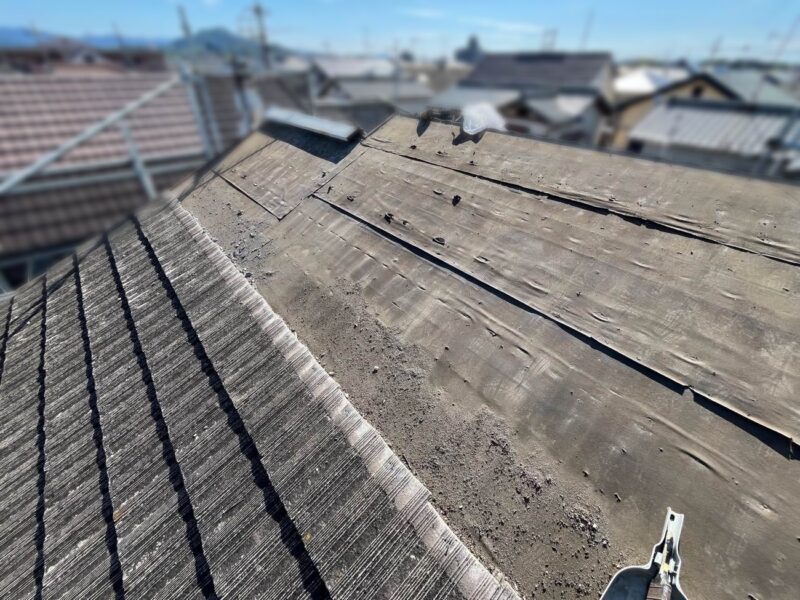 【既存屋根材撤去】既存屋根材を撤去します。