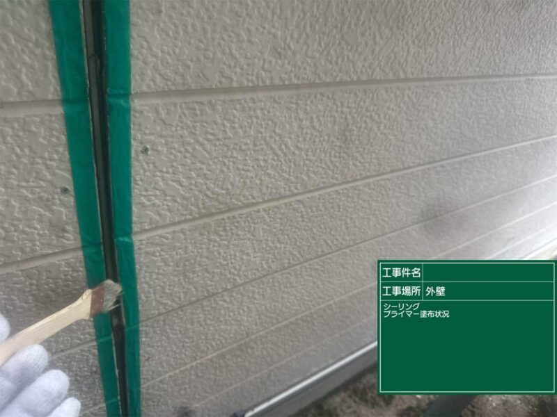 【下塗り】プライマーを塗布しシーリング材の密着をよくします。