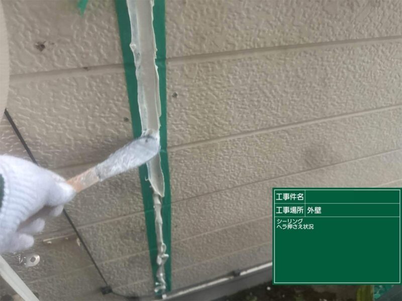 【押さえ】ヘラで表面を整えます。シーリング工事はこれで完了です。