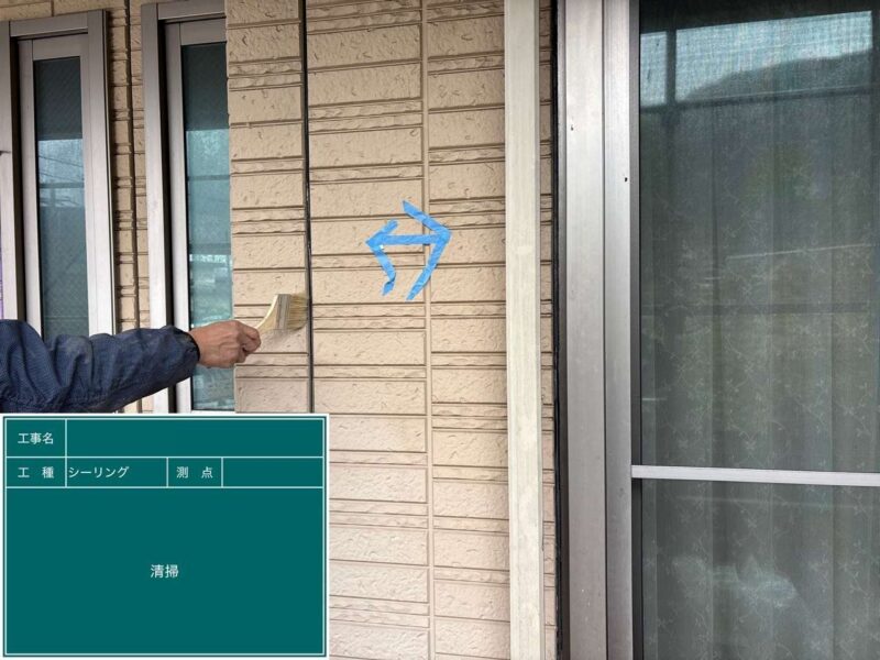 【下塗り】プライマーを塗布しシーリング材の密着をよくします。