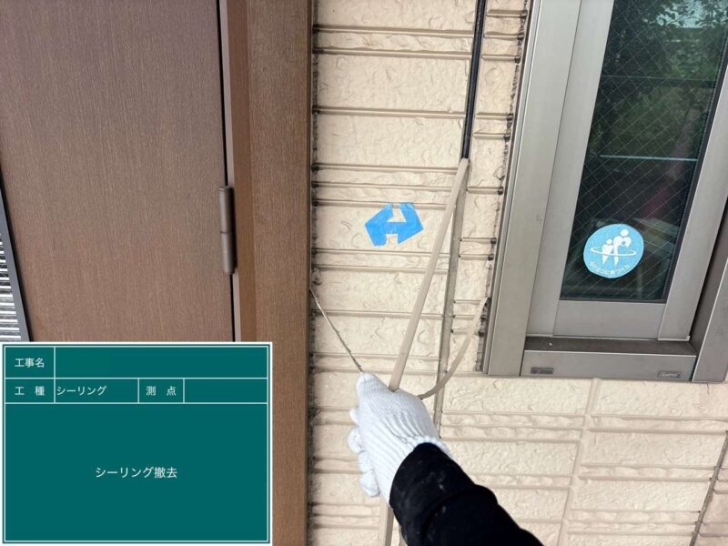 【シーリング撤去】既存の古いシーリングを撤去していきます。